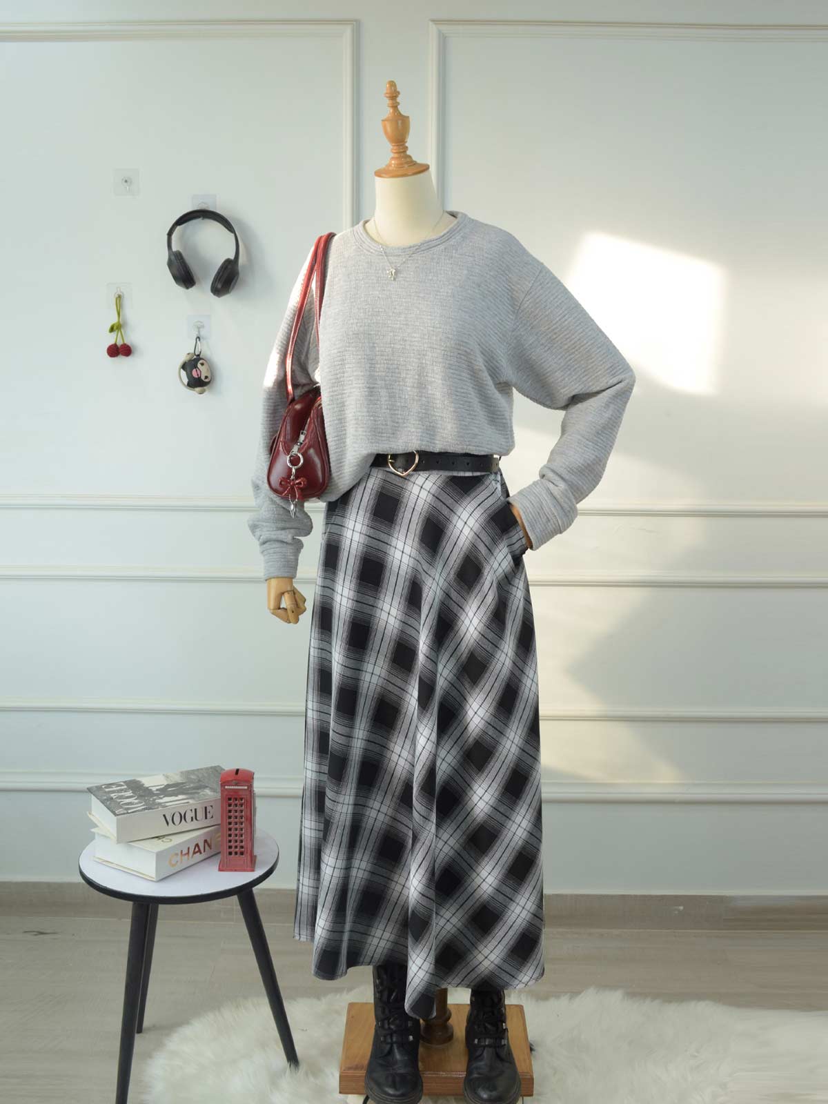 Design details: Elegant black and white plaid skirt featuring a softly flared silhouette that drapes beautifully. Designed with a structured waistband and smooth fall, perfect for effortless styling.